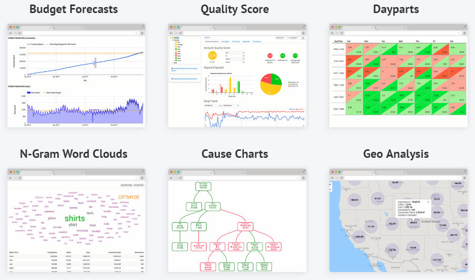 Tools of Optmyzr bear the design for both PPC experts and beginners. With a minimal input by the site, it will help automate optimization and manage the listing of the adverts in a more effective way that you would do it on your own. Additionally, it makes sure that PPC notifications and reports and alerts for Google Analytics, AdWords, and Bing Ads.
